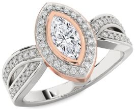 Diamond Rose Gold Silver Halo Marquise Engagement Ring