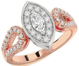 Diamond Rose Gold Silver Halo Marquise Promise Ring