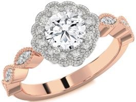 Diamond Rose Gold Silver Halo Round Engagement Ring