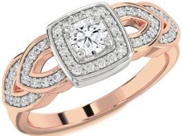 Diamond Rose Gold Silver Halo Round Promise Ring