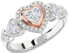 Diamond Rose Gold Silver Heart Halo Engagement Ring