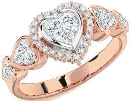 Diamond Rose Gold Silver Heart Halo Engagement Ring