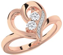 Diamond Rose Gold Silver Heart Two Stone Ring