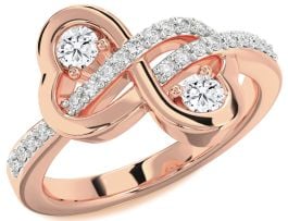 Diamond Rose Gold Silver Infinity Heart Two Stone Ring