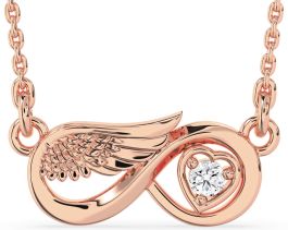 Diamond Rose Gold Silver Infinity Wings Heart Necklace