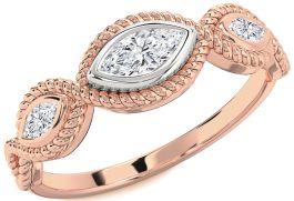 Diamond Rose Gold Silver Knot Marquise Three Stone Engagement Ring