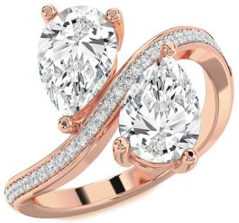 Diamond Rose Gold Silver Pear Two Stone Ring