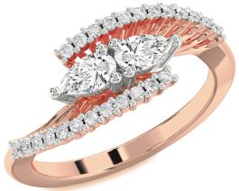 Diamond Rose Gold Silver Pear Two Stone Ring
