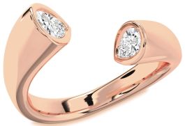 Diamond Rose Gold Silver Pear Two Stone Ring