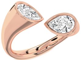 Diamond Rose Gold Silver Pear Two Stone Ring