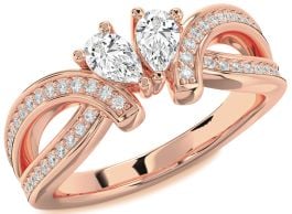 Diamond Rose Gold Silver Pear Two Stone Ring