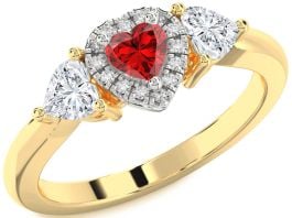 Diamond Ruby White Yellow Gold Heart Three Stone Engagement Ring