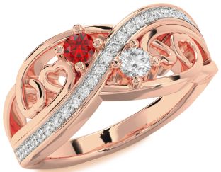 Ruby and Diamond Heart, Solitaire, Clover and Circle Rings Jul Ruby