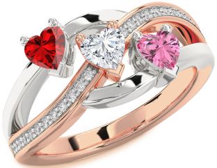Ruby and Diamond Heart, Sun, Circle and Interlock Rings Jul Ruby