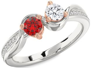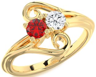 Ruby and Diamond Flower, Couples, Solitaire and Sun Rings Jul Ruby