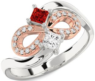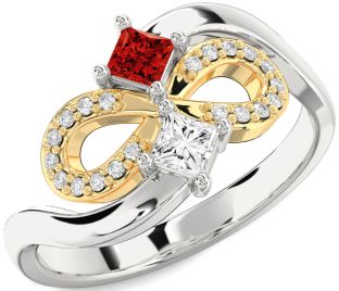 Ruby and Diamond Bow, Infinity, Star, Solitaire, Wings, Circle and Interlock Rings May Emerald and Jul Ruby
