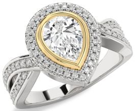 Diamond Silver & 10K gold Halo Pear Pave Engagement Ring
