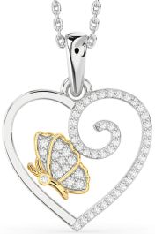 Diamond Silver & 10K gold Heart Butterfly Necklace