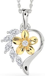 This graceful pendant blends nature and elegance in a heart-shaped design accented by a delicate flower and a cascade of sparkling stones. The flower's polished petals and a central sparkling gem add softness and charm, while the marquise-cut stones trace a shimmering path along the heart's curve. This pendant captures the essence of romantic beauty with a fresh, feminine spirit.