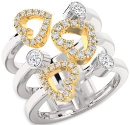 This lively and expressive Promise ring bursts with charm and color, featuring five dazzling heart-shaped outlines adorned with shimmering white stones. Set in radiant yellow gold, it’s accented with vibrant pink, purple, and white gemstones in bezel settings, adding a unique and playful flair. A standout Promise ring, it's perfect for celebrating individuality and joyful commitment.