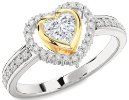 Diamond Silver & 10K gold Heart Solitaire Engagement Ring