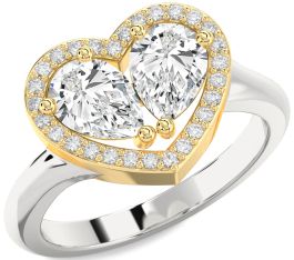 Diamond Silver & 10K gold Heart Two Stone Ring
