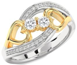 Diamond Silver & 10K gold Heart Two Stone Ring