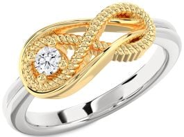 Diamond Silver & 10K gold Infinity Knot Round Promise Ring