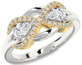 Diamond Silver & 10K gold Infinity Pear Two Stone Ring