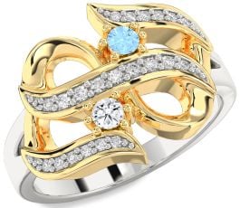 Diamond Silver & 10K gold Infinity Round Two Stone Promise Ring