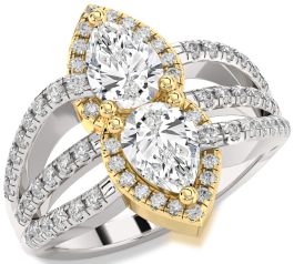 Diamond Silver & 10K gold Pear Two Stone Ring