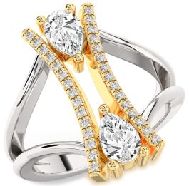 Diamond Silver & 10K gold Pear Two Stone Ring