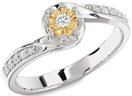 Diamond Silver & 10K gold Round Pave Promise Ring
