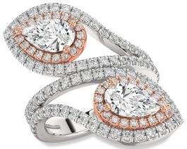 Diamond Silver & 10K Rose Gold Pear Two Stone Ring