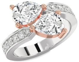 Diamond Silver & 10K Rose Gold Pear Two Stone Ring