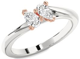 Diamond Silver & 10K Rose Gold Pear Two Stone Ring