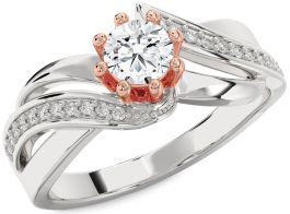 Diamond Silver & 10K Rose Gold Round Solitaire Engagement Ring