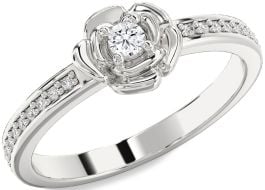 Diamond Silver Flower Round Pave Promise Ring