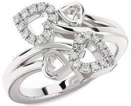 This charming promise ring features a delightful arrangement of open and diamond-studded heart motifs set in radiant yellow gold. The intricate design includes four hearts—two encrusted with shimmering diamonds and two in polished gold—symbolizing enduring love and unity. This captivating promise ring is a heartfelt expression of devotion, perfect for celebrating timeless connection.