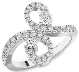 Diamond Silver Infinity Round Two Stone Pave Ring