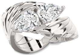 This distinctive Promise ring features a sculptural gold band with flowing, feather-inspired details that wrap gracefully around the finger. At its center, two pear-shaped stones—one icy blue, one radiant white—are cradled in a bold open setting. Symbolizing harmony and devotion, this striking ring blends artistry with deep emotional meaning, making it a powerful and romantic gesture.
