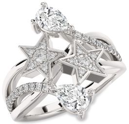 Diamond Silver Star Pear Two Stone Ring
