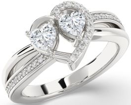 This elegant Promise ring features two heart-shaped stones nestled side by side, representing unity and lasting affection. A sweeping arc of pavé-set accent stones wraps around one heart, adding sparkle and contrast. The polished split shank enhances the flowing silhouette, bringing balance and elegance to the design. A timeless piece that beautifully captures the essence of love and togetherness.