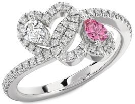 This stunning Promise ring showcases two heart-shaped motifs joined by a diamond-studded infinity symbol. One heart holds a white pear-shaped stone, the other a pink pear-cut gem. Set in radiant yellow gold, its intricate design symbolizes eternal love and commitment—making it a meaningful, elegant, and unforgettable expression of devotion and unity.