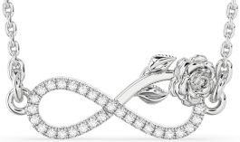 Evoke the romance of forever with this enchanting necklace, where a graceful infinity symbol meets a blooming rose. One side glistens with delicate stones, while the other flourishes into intricately sculpted petals and leaves, symbolizing love that blossoms eternally. A poetic union of passion and promise, this piece blends elegance and sentiment in a tribute to timeless affection.