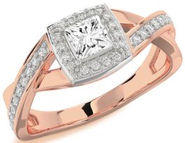 Diamond White Rose Gold Halo Princess Engagement Ring