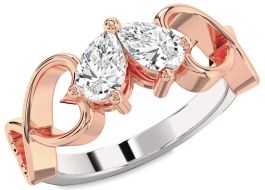 Diamond White Rose Gold Infinity Heart Two Stone Ring