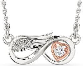 Diamond White Rose Gold Infinity Wings Heart Necklace