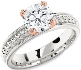 Diamond White Rose Gold Knot Round Solitaire Engagement Ring