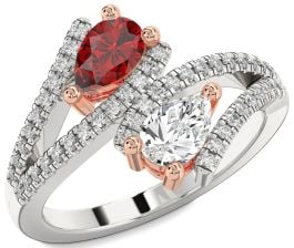 This dazzling Promise ring features an elegant bypass design in polished yellow gold, enhanced by two rows of pavé-set diamonds that embrace the band with brilliance. At the center, two pear-shaped stones—one deep red and the other soft pink—radiate warmth and affection. Symbolizing passion and tenderness, this ring is a heartfelt expression of enduring love and connection.